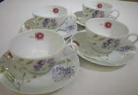 今回は、当店の食器やカトラリーへの考え方や選び方について、 少々お話しようかと思っております。もしかすると、昔少しお話したかもしれませんが、 私は10代の頃、本当に短期間ですが、お皿の絵付け教室に、通った事があり そんな縁もあって、食器やカトラリーへの思いは非常に強いのです。オホホホ と言っても、お店の場合、そう予算が沢山ある訳でもなく また、使う頻度が高かったり、洗浄機を使用するなど、色々な条件を クリアーした上で、一番お店の料理や雰囲気にあった物を選ばなければ いけないので、結構大変なんですよ。 特に柄物に関しては、このページの左上に掲載されているような野草や 花柄の物は、まだ無難ですが、派手なデザインや装飾、金やプラチナを 使った物や飲み口に線が入っている物などは、お皿でも同じですが、、 使う頻度が高いと、どうしても剥げてきたり、色褪せたりするので、 ご家庭では良くても、お店では扱えない(業務用としては不向き)場合も多く、 意外とお店の食器選びは難しいんですよ。 それからグラスに関しても、柄の部分が長く全体的に背の高い ワイングラスはデザイン的には非常に素敵で見栄えが良いけれど 倒れやすく壊れやすいなどなど・・・ お店の場合、本当に色々な事を想定して選ばなければいけないので 意外と世間的には楽しげに見えるこの作業も、実は条件にあった物を 探し出すのはとっても大変なんですよ。 そう、このページの左上に掲載されているカップも、ロイヤルリモージュの ベルナルドの輸入元の方に実際に何点か商品をお店に持ってきて頂いて、 お店の雰囲気に合うかどうか、またカップは持ち易いか、などなど 実際にテーブルの上に乗せて色々な角度から見たり、触ったりと 散々吟味した上で購入するかしないかが決定されたんですが、 散々悩んだ割には数個しか買えないトホホな私達でございまして、 輸入元さんには、非常に申し訳ないなーと 、毎回恐縮しております。 しかし、何事においても、とことん納得してからでないと 行動に移さない私達としては、この方法がベストなんですよ。 輸入元さんへは、本当にお手数をお掛けしてすみませんが これからも、末長くよろしくお願い致します。 そう 、そんな我々の我侭を聞いてくださっている、、ここ数年の当店のお気に入りの、お皿はロイヤルリモージュのベルナルドや、同じくリモージュのレイノーや ドイツのヴィレロイボッホなどなど、またグラスに関しては、 やはり、リーデルのヴィノムシリーズが一番使いやすいです。 しかし、これはあくまでも当店の話であって、他のお店には他のお店の 考え方や、価値観・お気に入りがあると思いますので その点は、 ご理解頂けると有難いです。