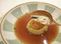 やっと、先週から北海道産の紫ウニを使った温前菜が 登場致しました。 今回は、色々と試作した結果、ウニでも海老でも牡蠣でも、 やはり、(魚介類は )ほんの少し火を入れてあげると、 生の状態より甘味や香りが増すのでは?と言う事から、 フランと言う日本で言う茶碗蒸しの様な 調理法を使って温かいウニのお料理を召し上がって頂く事に致しました。 丁寧にとった甲殻類<オマール海老>のコンソメと共に、 ちょっと懐かしい 感じのする味をお楽しみ下さい。 それから、4月頃から登場しておりました、穴子と有機ホウレン草の 温かいテリーヌは、一旦終了となりました。 また、デザートでは、定番人気の5種類のハチミツをブレンドした 自家製アイスクリームのパフェが、季節の桃と共に再登場となりますので、 是非、こちらもお楽しみ下さい。<桃・モモは美味しいですよねー> 当初、考えていた、国産のパッションフルーツは、非常に味と香りが強い為 ハチミツのアイスクリームと合わせるよりも、単一でこの味をもっと生かせる デザートに変更する事になりました。すみません。 それでは、今週はこの辺で 追伸・先週は先日伺った、京橋のレストランサカキさんのシェフ が 北島亭さんの若い方達を連れて、遊びに来てくださったので、 シェフは、久しぶりに自分の修行時代の話をしたりして、 とっても楽しそうでした。 ちなみに、北島亭さんの若い方達も皆坊主頭でした。 これって、流行?なのかしら・・・。
