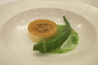 つい先日、暑中お見舞いなどと言っていたばかりなのに、 もう残暑お見舞い申し上げます、などと言う時期になっちゃいましたね、 本当に、最近時間が経つのが早く、ビックリしちゃいますよ、 そうそう、そう言えば本日は朝から停電で大変だったみたいですね、 私は、大体いつも日曜の夜は朝5時位までニュースを見ながら起きているので、 丁度停電の頃はお恥ずかしながら熟睡しており、 お 昼過ぎに久々の母上様からの電話で 初めて知った始末でして・・・・すみません。 きっと、会社に行かれている方やレストランやホテル、病院やデパートの方などは 大変 だったでしょうね、お疲れ様です。私はお客様からたまたま 1本だけお預かりしていた90年のムートンさんの事だけが心配で、 早速お昼過ぎに、お店のセラーを確認しに来たのですが、家のお店は 問題なさそうで、ホッと一安心、多分家のお店は地下なので、 それ程温度差が生じなかったの かも知れませんね、良かった良かったです。と言う事で、 大須賀さん、お元気ですか?ワインは無事でしたよ。オホ 一応、報告まで それから、話は変わりますが、今回新登場の、北海道の利尻・礼文産のウニを 使ったムースガトー仕立てなんですが、これもたまたま今日の朝の日テレニュースで 家が使用しているのと、まったく同じウニが紹介されていて ちょっとビックリしてしまいました、この今回 使用しているウニは、利尻で獲れたウニを 利尻山の湧き水を利用した塩水に浸かった状態で、北海道から直送して頂いて いる物で、非常に味・風味共に濃く持ちも良いのです。後で下に写真をアップしますが、 今回は、2人で本当に色々なウニを取り寄せて試食したんですが、 こちらが我々としては、、色々な意味を含めてのベストでした、 しかーし、前にもお話しましたが、お料理でも材料選びでも、 それぞれのお店によって考え方や選び方は違うと思いますので、 これはあくまでも当店の場合のベストですと言う意味ですのであしからず。オホ それから新登場の、このウニのムースは、少しオーブンで焼く事によって 更に甘味と風味を凝縮させたウニを乗せ、その上から丁寧に挽いた コンソメを流し込んでございます。 そして今回こちらのソースには、試行錯誤した結果、今が旬の静岡産・有機栽培の ネバネバ・パワー全快の丸オクラさんを、一緒に合せてみました、、 元々、この丸オクラさんは、体が大きい割には、非常に繊細で 生でもパリパリと食べられてしまう位柔らかく 甘味がある為、あまり手を加えずジュードレギュームと共に ミキサーにかけるだけで、ウニの味を壊さず、良い相乗効果をもたらすのでは? と言うシェフの考えから、何度かパターンを変えて試食した上で この様な 上品で繊細な味わいのソースに仕上げてみました。 是非、夏の終わりの良い想い出に、当店にて夏の味覚を満喫してみませんか? 皆様のご予約をシェフ共々心よりお待ちしております。 それから、こちらのお料理は、もう既に先週から登場しているんですが 実は、先週入らして頂いたお客様の大半が、このお料理を ご注文してくださってたんですよー、本当に有難うございます。 シェフも、とっても喜んでおりました。 お店が終わった後に、1杯だけお疲れビールを飲みながら 『4日間お店に泊り込んだ 甲斐があったよ』 と、いつもは怖い顔のシェフも久々にニッコリしておりました。 それでは、また来週