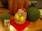 先週1月6日はシェフのお誕生日、シェフは48歳になりました、 本人曰く、あっと言う間だったそうですよ。 世の48歳の皆様は如何ですか??ま、それはさておき 今年は年男のシェフとしては、より一層ハリキッテ、 上の写真の猪さんの様に、<お気に入りの写真ハガキなんですー> 一直線に前進していくそうです<笑>。 そう言えば、私今年はお正月早々、自宅マンションで、 凄い物を発見しました。それはブヒブヒと泣く豚さん。 飼い主さんは、マンションでは動物禁止なので、私に見つからないように 一生懸命隠しているつもりなのですが、その赤い首輪をした黒豚さん、 いくら隠しても、隠し切れない大きさでして・・・・おまけに飼い主さんが 無理やり引っ張るので 小さい声で『ブヒブヒ』と言っておりました。 多分その豚さんは車に乗せられて、どこかへお散歩に行って帰ってきた ところだったのでしょう、お正月から、とっても凄い光景でしたよー。 まあ、動物好きの私としては出来れば触らせて欲しかったぐらいですが・・・ 飼い主さんとしては、それどころではなかったらしく、私の前を猛スピードで 通り過ぎて行ってしまいました、残念。 <ちなみに豚さんはついて行けてませんでしたが・・・>。オホホホ それから、今週は1つお知らせです、来週1月15日からお正月休みを頂きます。 その間に、お店の大掃除をしてシェフと共に新メニューを考えるつもりです。 それでは、今週はこの辺で失礼致します。 追伸 ・先週入らして下さった9歳になった優佳ちゃん、シェフのお誕生日のお祝いに ステキな絵とお花を有難うございました。大切に飾らせて頂きます、 それから、塚瀬さんと芹澤さん、ういろとモナカを有難うございました。 この場を借りましてお礼を申し上げます。 今週は下に我が家のお正月の食卓&お正月グッツ写真をアップしてみました。
