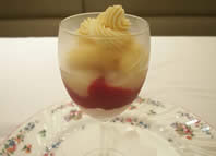 今回は、当店もお陰様で7月14日にて、満14周年を迎え、いよいよ15年目に突入 という事で、シェフが一番お得意のトラディショナルフレンチの中で、色々と自分達なりに アレンジした物を少しづつ登場させ皆様にご紹介していければという事で、 今月は、そろそろ桃の季節ですし、桃を使って、フレンチ好きならきっと1度は耳に した事がある、19世紀に活躍された偉大な料理人エスコフィエさんが、 ロンドンのサヴォイホテルの料理長に就任された時にオーストラリア人のオペラ歌手 ネリーベルバさんを記念して1893年に作り出した有名なデザート ペッシュメルバ<桃のシロップ煮とバニラのアイスクリームとフランボワーズのソースを使ったデザート>を自分達の感覚で何度も試作を重ねた上で少々アレンジした物を 登場させてみました。 そもそも、家のシェフは昔から、本はよく読むのですが人様が作ったお料理やレシピを そのまま作ると言う事は、どーも肌に合わないようで、どのお料理もなるべく 自分達で案を出し合い、何度も試作を繰り返し最終的に納得のいった物を、 お客様へお出しするというスタイルをとるのがお好きなようでして・・・ がしかしこれが、一番時間と研究費が掛かって私的には大変なんですけどね、トホホ という事で、今回も昨日までは、実は違った組み合わせで、この桃のパフェを出して いたのですが、サービスが終わった後に最終的にもう一度2人で試食した結果、 どーもパフェの中に入っているスポンジ生地と赤い桃ムースが 単品デザートとしては良いけれど、食後のデザートとしては全体的な バランスを考えると、どーも、もそっとしてしまい 印象がスッキリしないように思え納得が出来ないよね、などと言う話になってしまい 私の脳裏には、んーこのままこの話が進むと試作が始まり・・・ うーもしかして、ねっ眠れなくなるかも?と思いつつも、昔から我々の場合 一旦自分達のお店の話になると納得がいくまで 朝まで生テレビ状態になる傾向があるため、あーどうしようと思いつつも 思わずいつもの調子でシェフに、余計な一言アドバイスをしてしまった私 『シェフ、思い切ってこのスポンジ生地とムース2つをなくすか、 もしくはもう少し酸味がある、ソースではなくジュレの様な物<ソースのままの形だと フランボワーズの酸と香を強く感じすぎてしまう気がするのでと言う私の個人的意見で> が必要なのではないかと言う意見を出してしまい、やはり思ったとおり その方向で、試作が始まりシェフは色々な物のジュレを試しだし・・・ 例えば赤ワインや・白ワイン・ロゼのシャンパン それから、ハイビスカスやローズップのハーブティのジュレなどなど 色々なパターンで試作し、その都度意見を出し合い最終的にフランボワーズのソースを ジュレに変えるのが一番酸味と香、桃とのバランスが良く、スッキリするのではないか と言う結果になり<これはあくまでも我々の個人的な意見です> エスコフィエさんが考え出した、桃のシロップ煮とバニラのアイスクリーム、 そこへ、我々が試作しオリジナルで考え出した赤い桃のムース少々と フランボワーズのジュレを加え、当店を御愛護頂いているお客様へ 満14周年を 記念して、また違った1つの新しいデザートが出来上がりました。 めでたしめでたし。と思ったら朝でした。トホホ という事で是非ご興味のある方は期間中に メルバさんになった気分で トライしてみて下さいね。 追伸・7月がお誕生日&結婚記念日のお客様へ お誕生日おめでとうございます。新しい一年も健康で皆仲良く 美味しい物を沢山食べて飲んで楽しく過ごせますように、 シェフ共々願っております。オホホ