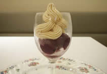 今週は2週間ぶりの更新となってしまい、すみませんでした。ぺこり どーも、ジビエの時期になると、と言うかここの所調理場に入って色々と 研究していることがあり、コンピューターの前に座れる時間が少なくなって しまってるんですよね、せっかく自宅にもコンピューターを購入したと言うのに トホホです。とこの話はさて置き今回は、お客様の熱いリクエストにお答えして 再登場いたしました、定番人気の3種〜4種類の蜂蜜をブレンドした 自家製 アイスクリームと季節のフルーツのパフェの、季節のフルーツに隠された ご家庭でも簡単出来る秘密の調理法を伝授致します。オホホホ 私、昔から巨峰とかマスカットなどブドウ類を食べる時に、どーしてこんなに 皮を剥くのがめんどくさいのだろう?と思っており、またブドウってイメージとしては ルビー色に輝く紫色?と言う感じなのに、どーして皮を剥くと皆淡いグリーンに なってしまうんだ、などと言う疑問があり、その度にシェフに ぶどうと言えば紫でしょーと言いまくっていたのですが、 ある日、シェフに調理場で一言「巨峰、皮を剥いても紫色になる方法を見つけたよ」 と 言われ、何だろうとわくわくしながらその調理法を見ていたところ、 結果は、そんな簡単にできるんだとビックリ、これならご家庭でも簡単に出来るし 是非皆様へお伝えせねばと仕込みを手伝いながら写真もパチリ、 そして肝心の調理法なのですが、 まず、用意する物は鍋に沸かしたお湯とザルとボールに氷水と巨峰さん そして、これらが用意できたら巨峰を熱湯の中に皮ごとサッと素早く通し 表面の皮が切れないうちにサッとザルにあけ氷水にいれて冷やします、 荒熱が取れたら氷水から上げて、そのまま皮がついたまま1日冷蔵庫に置いておくと なッ何と、次の日にはブドウの表面にブドウの皮の色素が浸透し ルビー色に輝く巨峰さんに大変身、(ちょっと大げさですかね、アハ) 皮も、つるっと剥けるので、まとめて剥いてドーンとお召し上がり下さい。 ご興味のある方は、是非当店で実際の物をお召し上がりくださいね。 シェフ共々お待ちしております。蜂蜜のアイスとの相性はばっちりですよ。 それでは、今週はこの辺で、 追伸・ 私と同じ10月生まれのお客様〜、お誕生日おめでとうございます。 お互いに、新しい年も健康で楽しく美味しい物を食べまくりましょうね。食いしん坊代表より