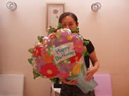 先週の3連休、皆様如何お過ごしでしたか?私は丁度連休中に お誕生日を迎え37歳になってしまいました、オホホホ 今年は、お店の営業日と言う事もあり阿佐ヶ谷時代からのお客様や 六本木に移ってからずーとお付き合いして頂いているお客様方に 一緒に祝って頂き、楽しく過ごすことができました。 普段、お客様を祝う方の立場なんですが、 今回は、皆さんに祝って頂き久しぶりに大いに楽しんでしまいました。 また、お菓子や上にも写真でアップしたんですが素敵な花束の柄が付いた とってもお気に入りの風船が付いたお花など、お心遣い頂き誠にありがとうございました。 これからも、シェフ共々ずーと現役で仕事を続けられるよう 心身共に鍛えて?(笑)頑張ります。 と言う事で、この話はこの辺で先週よりいよいよ季節限定の人気デザート 栗の渋皮煮のスフレが登場しております。 こちらは、短い期間での登場となりますの、ご希望のお客様は どうぞおはやめにですぞーー。 それから、先週から少しづつお料理の映像をYou tubu<ユーチューブ)に アップしておりますので、是非こちらもポワン・ドゥ・デパーで検索して頂き お楽しみくださいね。 それでは、今週はこの辺で、またまめに更新出来るようがんばります。 追伸・先日シェフが業者さんの留守番電話で「しおぞうワカメを2つ」と 真面目な顔をして注文を入れてたんですが、これって「塩蔵「えんぞう」わかめ?」 って読むんじゃないですかね?私とても突っ込めませんが・・・。 後で下に写真をアップしますね。