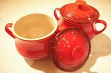 今回は、お隣のミッドタウンにて行われていたバーゲンセールでの戦利品のご紹介です、私位の年になるとどーもお洋服とか靴と言うよりも食器や鍋釜に目がいてしまうんですよね、オホホホ、と言う事で、こちらはニューヨーク在住のバーバラ・アイガンさんの作品で温かみのあるハンドメイドの食器です、1つ1つ微妙に形が違っていて、お魚の裏ごしスープ用に購入してきました。決して飲み終わった後に結構なお手前でしたなどと言わないように注意して下さいね。<笑>抹茶ではありませんので。 |