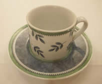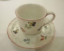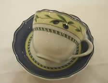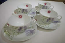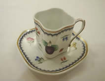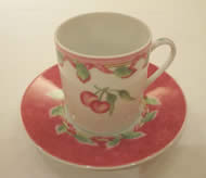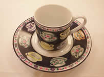 こちらは、アジアをイメージして作られた、東洋のお花の柄が描かれたグリーンと淡いピンクが初夏らしい爽やかな印象のリモージュ焼き・ベルナルドのカップさんです。紅茶と言うよりはハーブティーが似合いそうなカップですよね。今週からお店で登場しますのでお楽しみに。 |