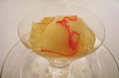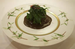 この写真は、少し前に登場していた、マンゴーのババロワ・アールグレーのソースです。このデザートも、とってもお薦めなので、また今度再登場させる予定です。