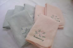 こちらは、昨年歩いて歩いて探した、当店の化粧室でお客様達に使用して頂いている、おぼろタオルです。昨年は淡い黄色地にピンクの小さな水玉模様のみだったんですが、今年からは、店員さんのお薦めもあり、淡い水色に紺の水玉模様も取り揃えてみました、是非化粧室をご使用の際は、触り心地をチェックしてみてくださいね。 |
