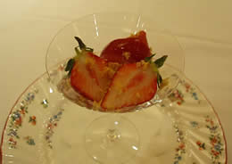 お店のお皿を真っ白な物から、柄のある物へ買い換えた時、一番よく購入していたのが、実はイギリスの食器でして、その中でもウエッジウッドの物が一番多かったように思います。こちらは、六本木に移って初めてのクリスマスの時、食器が足らず、急遽購入した、ワイルドストロベリーの新しい少しシンプルなシリーズの物で、この1粒だけ描かれている苺が、何とも可愛らしくて購入してしまいました。 |