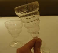 こちらは、ミッドタウンに入っている、ヨーロッパを中心とした食器や雑貨・生地を販売しているお店で見つけた、夏向きのジュレやソルべなどデザートや前菜に良いのでは?と思い、購入してみたグラスです、柄の部分に1ポイント特徴とボール部分が透明な縦線状になっているので、テーブルの上に綺麗な影が出来るのも面白いと思い購入してみました。価格は、ここでは言えない位リーズナブルなんですよ。