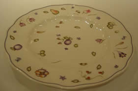 チャッツワース、フルーツやお花の柄が、とても可愛らしく、春らしいお皿でお気に入りだったのですが、こちらも購入して間もなく廃盤になったと言う噂を聞き、非常に残念だなーと思った記憶があります。 |