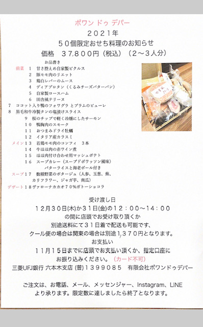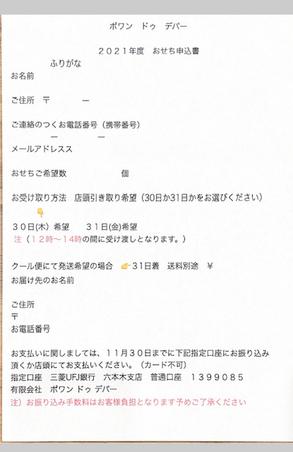 なお、おせちの料金支払いは店頭にて 11月15日までに支払い頂くか、