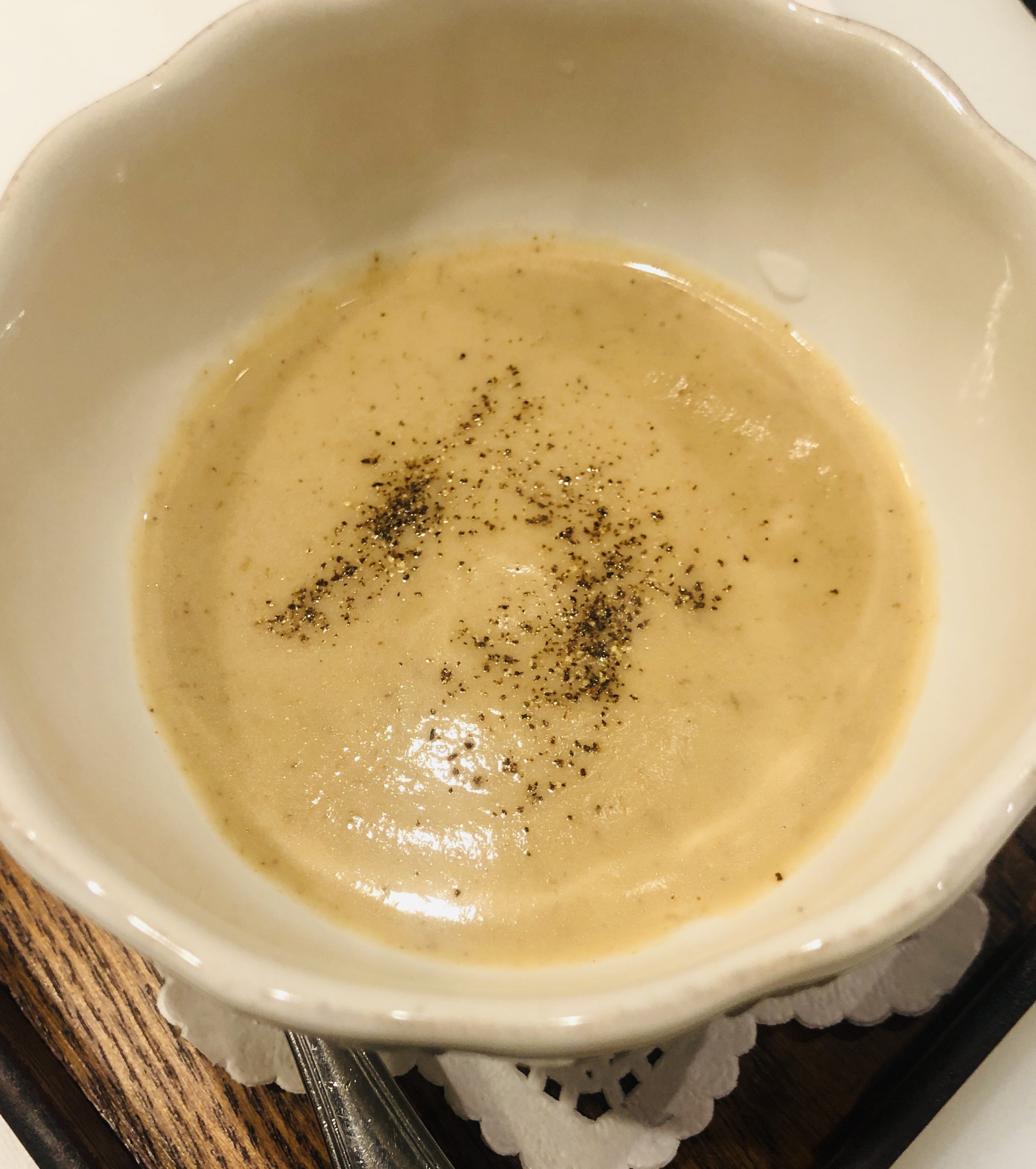 お任せコースのカラメリゼしたカリフラワーのヴルーテ