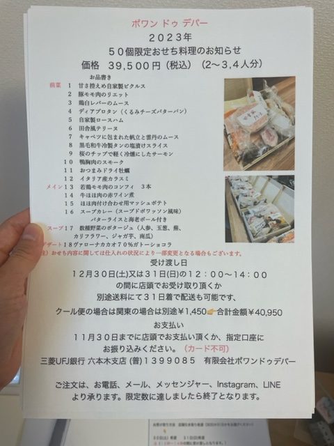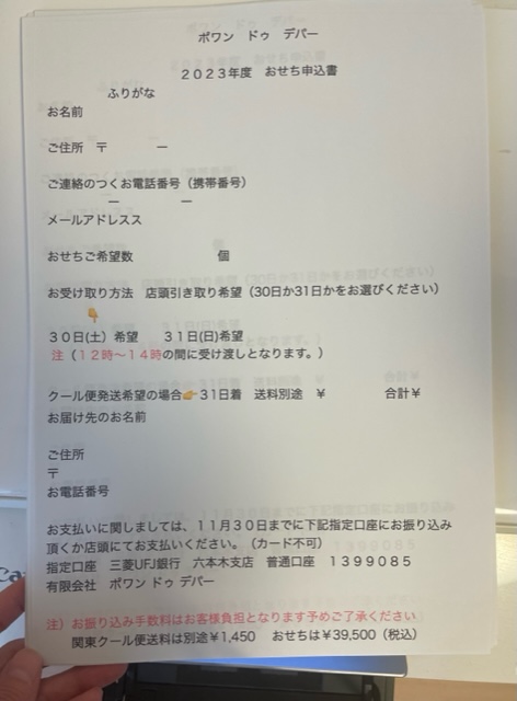 お節のお申し込みも先週より始まりました