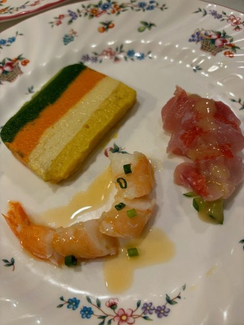 テリーヌ仕立て、鮮魚のカルパッチョ添え