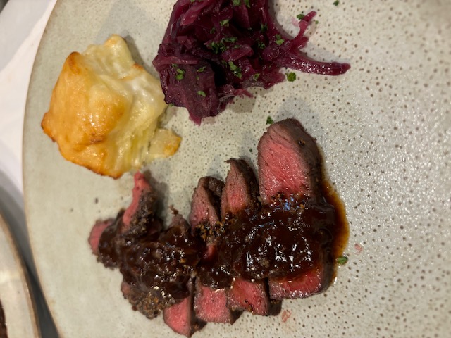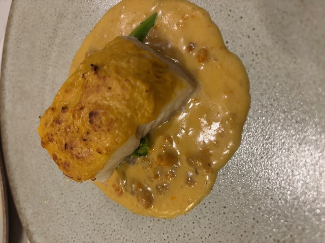 こちらはクラシックな魚料理、肉厚なひらめの上に