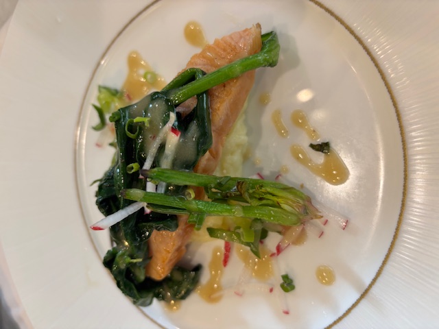 サーモンのポワレ(チエドにて火入)ジャガイモのピューレ添え