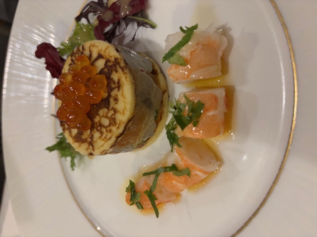 海老とサーモンのタルタル、ジャガイモのクレープサンド