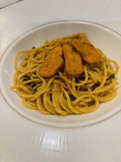 ズワイカニとホタテのコロッケや、カラスミの手打ち麺
