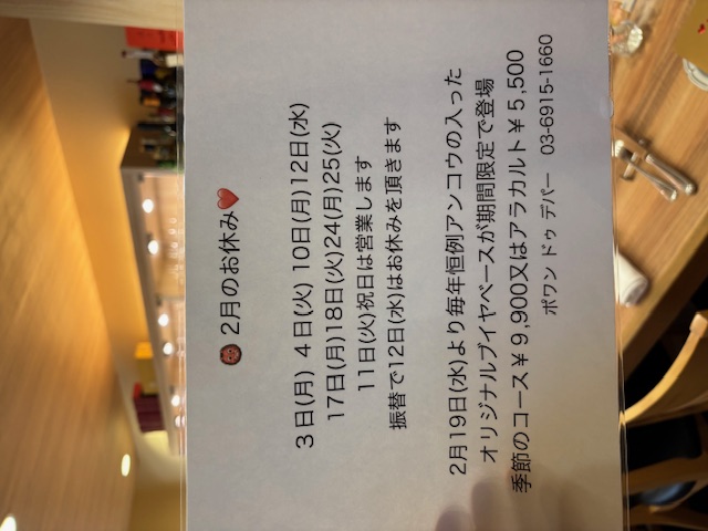 終了となります、お任せコースや季節のコース、アラカルトを